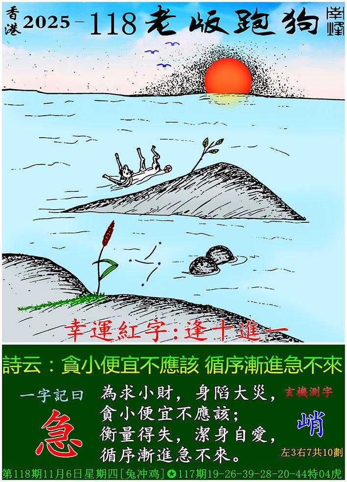 118期老版跑狗一字記之曰:【急】 玄機測字:《峭》