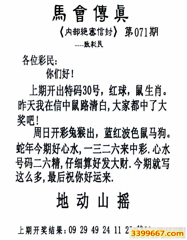 071期:首发推荐:≮馬會傳眞≯→(香港正版)