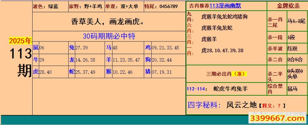 113期:小鱼儿30码期期中+幽默猜测