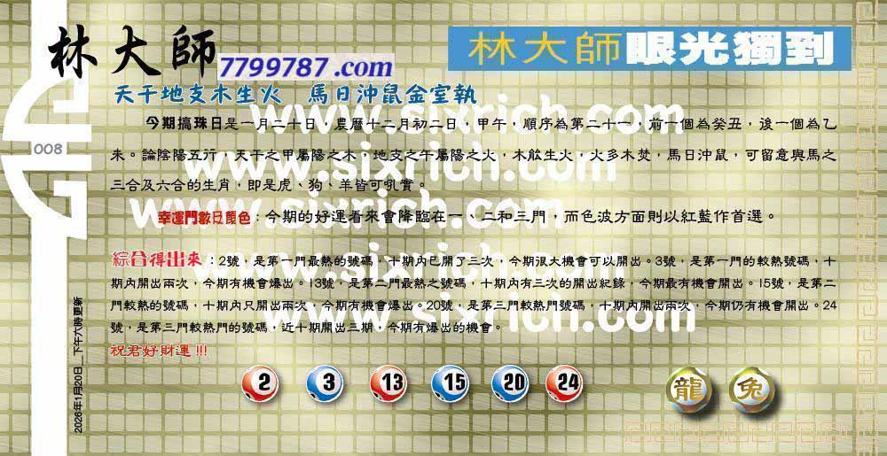 008期:六合皇金句/老总论码/萧公子/林大师/五行夺码/老总信箱截