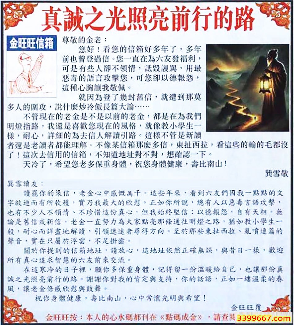 082期:金旺旺信箱彩民推荐→→《真誠之光照亮前行的路》