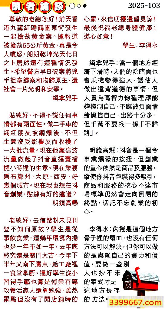 第一零三期讀者論談