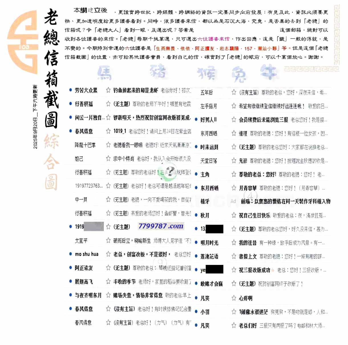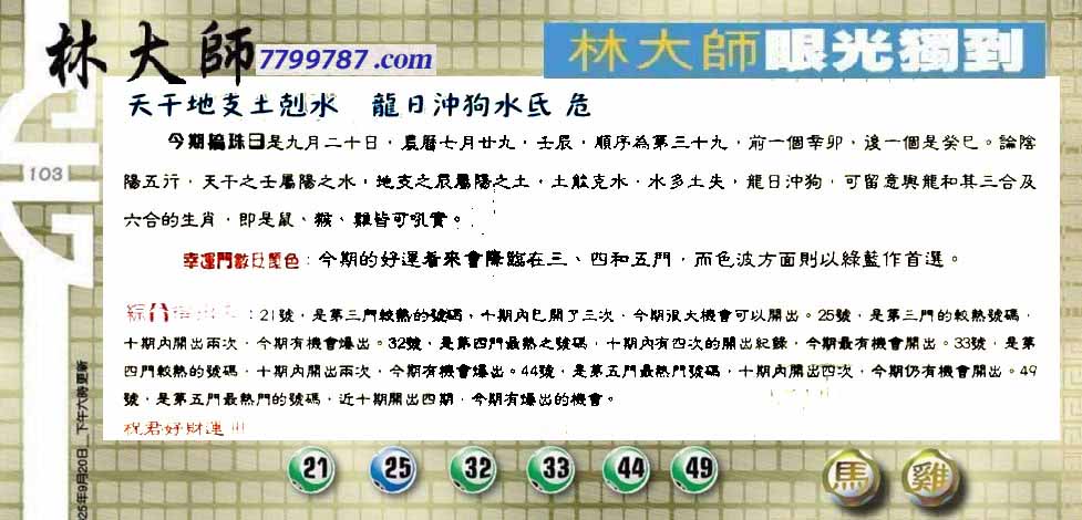 103期:六合皇金句/老总论码/萧公子/林大师/五行夺码/老总信箱截