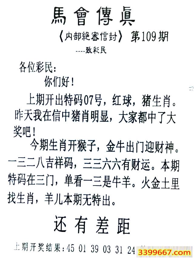 109期:首发推荐:≮馬會傳眞≯→(香港正版)