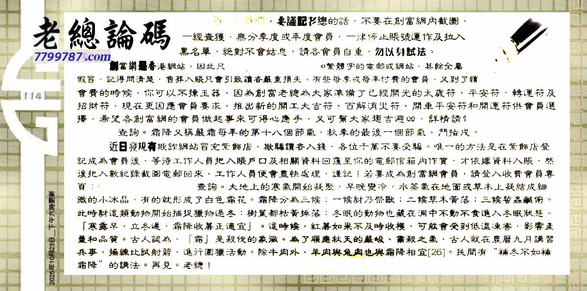 114期:六合皇金句/老总论码/萧公子/林大师/五行夺码/老总信箱截