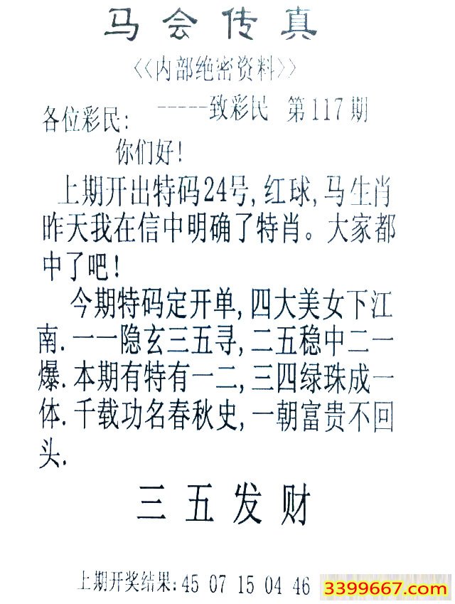 117期:首发推荐:≮馬會傳眞≯→(香港正版)