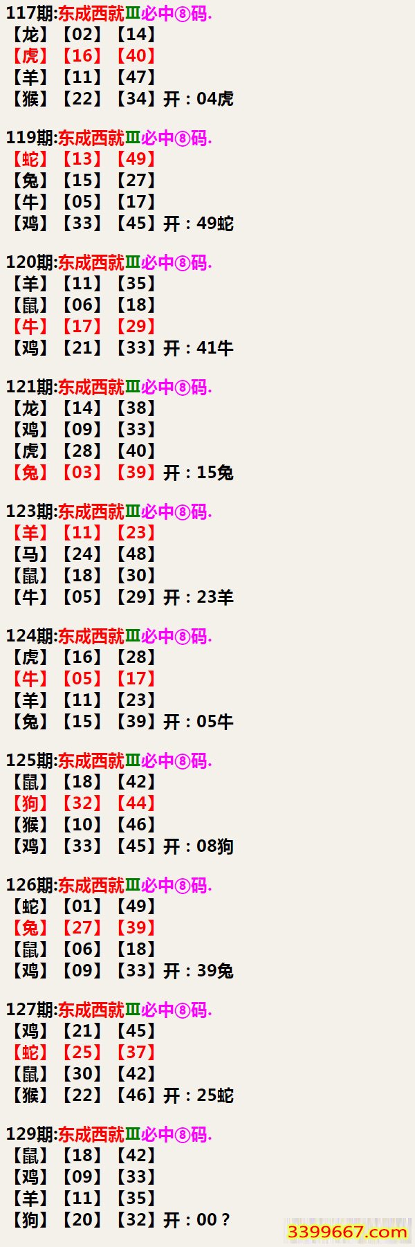 129期:东成西就Ⅲ必中⑧码