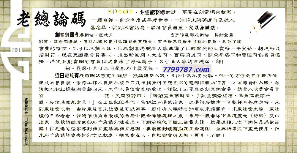 131期:六合皇金句/老总论码/萧公子/林大师/五行夺码/老总信箱截