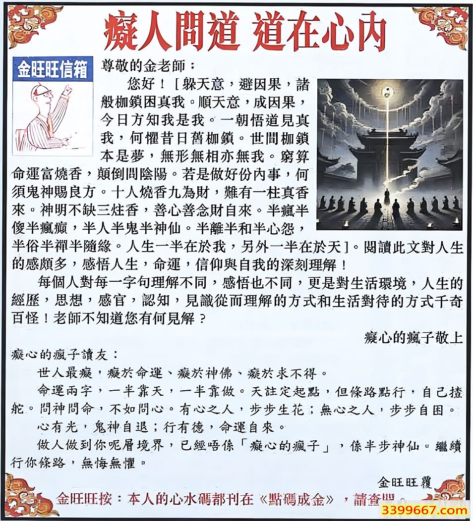 133期:金旺旺信箱彩民推荐→→《癡人問道 道在心內》