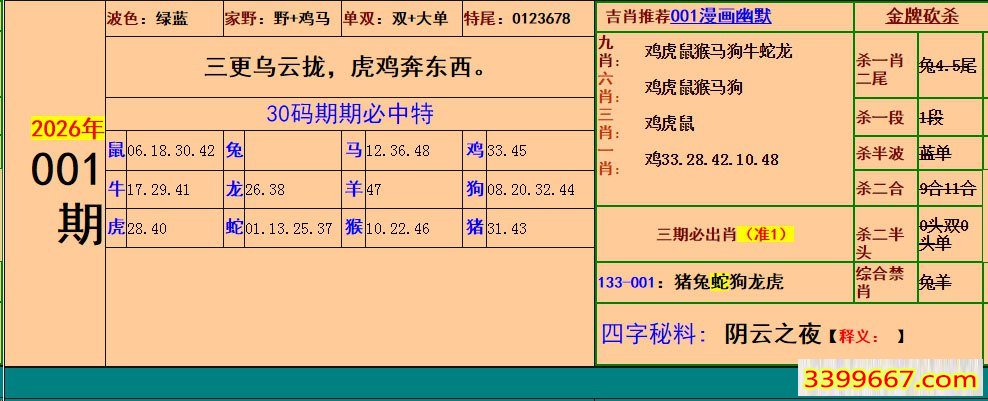 001期:小鱼儿30码期期中+幽默猜测