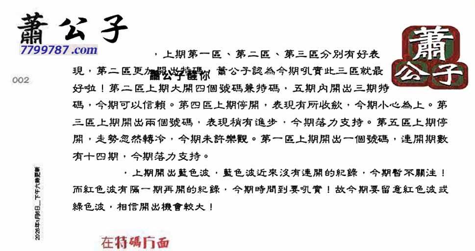 002期:六合皇金句/老总论码/萧公子/林大师/五行夺码/老总信箱截
