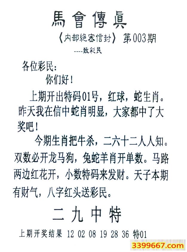 003期:首发推荐:≮馬會傳眞≯→(香港正版)